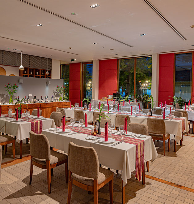 The Champagne Fine Dining Restaurant serves breakfast, lunch, and dinner during the following times: