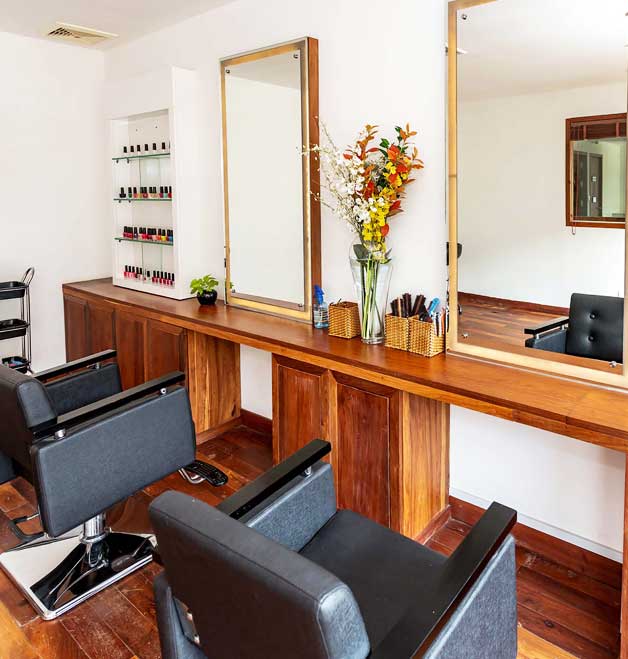 The Hair Salon is located just next to Aloe Spa. It offers a comprehensive range of hair services for ladies and gentlemen including hair-wash, blow, dry, styling, perming, and beauty treatments such as facials, waxing. We also offers nail care services.
